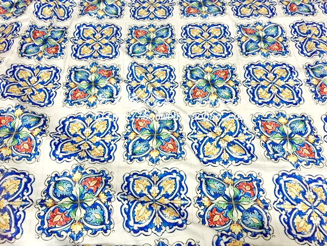 Tessuto in cotone blu, al metro, bianco maiolica di Delft: Amazon. Maioliche di stoffa perchè mi sono ispirata alle antiche maioliche che decorano il palazzo Topkapi di Istambul. Ho ricreato il colore dell'oro con l'uso dei gialli e .